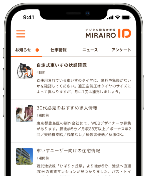 デジタル障害者手帳「ミライロID」は、障害のある人に向けたスマホ用アプリです。